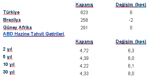 Perşembe günü açıklanacak olan kritik ABD enflasyon verisi öncesinde bugün, ABD verim eğrisinde eğri boyunca getiriler yükseldi. 2 yıllık getirisi 6 puan artışla %4,72, 10 yıllık getirisi 6 puan artışla %4,21 ve 30 yıllık getirisi 8 puan artışla %4,32 seviyesine yükseldi. Diğer gelişmiş ülke tahvillerinde de benzer bir seyir hâkim oldu. Birleşik Krallık 10 yıllık getirisi 10 puan artışla %3,62, Almanya 10 yıllık getirisi 5 puan artışla %2,33 ve İtalya 10 yıllık getirisi 1,5 puan artışla %4,46 seviyesinde günü tamamladı. Gelişen ülke eurotahvillerinde ise pozitif risk iştahına paralel olarak alıcılı bir seyir hâkim oldu. Türkiye hazine eurotahvilleri de bu seyre dâhil oldu ve 2 yıllık getirisi 16 puan düşüşle %7,01, 5 yıllık getirisi 6 puan düşüşle %9, 10 yıllık getirisi ise 10 puan düşüşle %9,80 seviyesine geriledi. Hazine bugün gerçekleştirdiği ihraçla 2028 Ocak vadede %10 kupon oranı ile 1,5 milyar dolar borçlandı. İkincil piyasada işlem görmekte olan 2028 Şubat vadeli kıymetin getirisi ise %9.21 seviyesinde günü tamamladı.