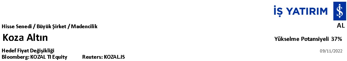 Şirket Raporu: Koza Altın – KOZAL.IS: Hedef Fiyat Değişikliği