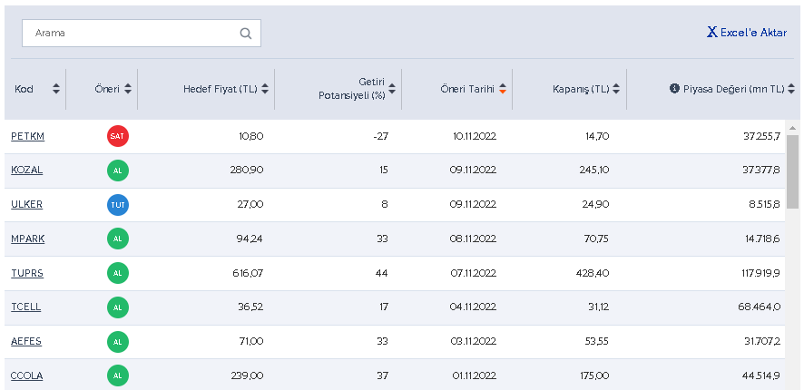 Hedef fiyatını bu ay güncellenen takip listemizdeki şirketlerin listesini aşağıda inceleyebilirsiniz.