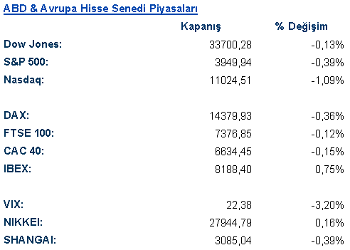 Uluslararası Piyasalar Kapanış Raporu – 21.11.2022