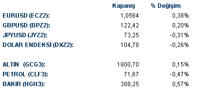 Emtia piyasalarında karmaşık bir seyir izlendi. ABD’de bulunan Keystone boru hattının bir sızıntı nedeniyle kapatıldığı haberi sonrası sert alımlar yaşanan petrolde ilk tepki korunamadı ve kar satışları gözlendi. Ocak WTI Petrol %0,8 kayıpla $71,45, Şubat vadeli Brent Petrol ise %1,5 kayıpla $76 seviyesinde işlem gördü. Genel olarak güçlü bir görünüm sergileyen endüstriyel metallerde alüminyum %0,7, bakır %1,02, çinko ise %1,68 primle günü tamamladı. Altında enflasyon verisi öncesinde sakin bir seans geride kaldı. Gün içinde en yüksek $1794,87 seviyesini kaydeden spot altın günü %0,1 primle $1788 seviyesinde tamamladı. Altına kıyasla daha kuvvetli bir seans geride bırakan gümüş ise %1,45 değer kazanarak günü $23,05’ten sonlandırdı.