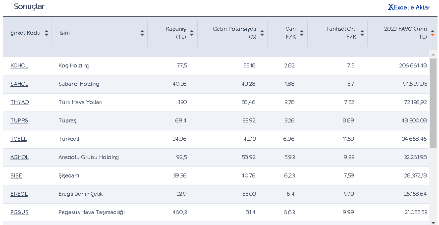 BIST – Yüksek FAVÖK yaratabilen ve tarihsel ortalama F/K değerinden düşük, ucuz şirketler listesi aşağıdadır.