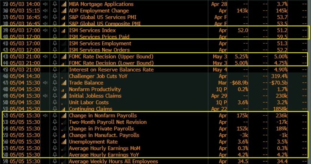 Hafta sonu boyunca bölgesel bankalar arasında sıradaki domino taşı konumundaki First Republic Bank’in satılması konusunda görüşmeler hız kazanırken, dün itibariyle FDIC tarafından el konulan bankadaki mevduatların JP Morgan tarafından satın alınacağı açıklandı. JP Morgan satış haberine tepki vermeyen Amerika hisse senedi piyasaları FED haftasının ilk işlem gününü yatay seviyelerden sonlandırdı. Bölgesel bankalar özelinde FRC’nin satışı ardından kısa vadeli de olsa rahatlamanın hakim olacağı piyasalarda, geçtiğimiz haftanın aksine FOMC faiz kararı ve ekonomik verilerle beraber makro takvimin öne çıkacağı bir hafta bizi beklemekte. Çarşamba günkü FOMC toplantısında baz senaryo olarak 25 baz puanlık artış beklenirken, piyasalar açısından asıl kritik olacak sinyal FED’den gelecek açıklamalarda arttırımlara devam mı edeceği ya da beklemeye mi geçeceği eğilimi olacaktır. FOMC toplantısına ek olarak veri odaklı politikasına devam edebilecek FED açısından ayrıca ISM Servis endeksi ve İstihdam verileriyle makro takvimin yoğun olduğu bir haftadayız – verilere yönelik beklentileri ekte görebilirsiniz. Şirket bazlı hareketlerde ise geçtiğimiz haftaki mega-cap teknoloji bilançoları ardından sayı olarak yine yoğun ancak Perşembe günkü Apple (AAPL)’ın açıklamaları dışında bilançoların piyasa etkisi sınırlı olacaktır. Haftanın öne çıkabilecek bilanço açıklamalarını aşağıda görebilirsiniz;