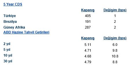 ABD’de beklentilerin üzerinde açıklanan ISM imalat verisi ve imalat PMI verisiyle beraber inşaat harcamalarının aylık bazda beklentilere paralel gelse de önceki ayın verisine yapılan yukarı revize durgunluk beklentilerini azaltırken FED’in önümüzdeki döneme dair olası faiz artış ihtimalini de artırıyor. FED vadelilerine göre Aralık ya da Ocak toplantılarından birinde 25 baz puanlık artış ihtimali %50 seviyesine kadar yükselmiş durumda. ABD 10 yıllık tahvil getirisi de yaklaşık 11 baz puan yükselerek %4.68 seviyesine geldi ve son 16 yılın en yüksek seviyesine ulaştı. Getiri eğrisinin tamamının yukarı kayarken 2 yıllık tahvil getirisi de yaklaşık 7 baz puanlık yükselişle %5.11 seviyesine geldi. Avrupa 10 yıllık tahvillerinde de benzer satış baskısı vardı. İngiltere 10 yıllık tahvil getirisi yaklaşık 12 baz puan yükselerek %4.56 seviyesine gelirken Fransa, Almanya, İspanya ve Portekiz 10 yıllık getirilerinde de ortalama 8 baz puanlık yükselişler takip edildi. Türkiye’de 5 yıllık risk primi bugün yaklaşık 7 baz puan yükselerek 405 puan seviyesine gelirken getiri eğrisinin tamamında Avrupa ve ABD tahvillerinde olduğu gibi yukarı yönlü hareketler izlendi. 10 yıllık tahvil getirisi 13 baz puan artışla %8.70 seviyelerine gelirken kısa vadelerdeki değişim daha sertti. 2 yıllık kıymet getirisi 23 baz puan artarak %7.30 seviyelerine gelmiş durumda. Yeni ihraç olan 2028 vade banka kıymetleri de tekrar %9 seviyesinin üzerine çıkmış durumda. Geçtiğimiz hafta ihraç olan 2028 vade WESODA kıymeti ise %9 getiri bölgesinin üzerinde işlem görmeye devam ediyor.