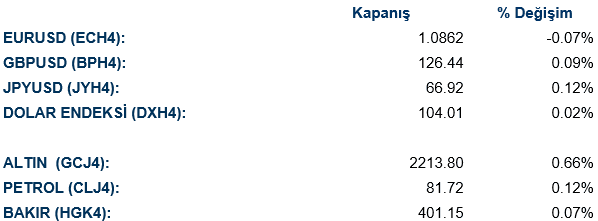 Yarın ABD tarafında haftalık işsizlik verileri ile Chicago PMI verileri, Avrupa tarafında ise İtalya ÜFE ve Almanya perakende satış verileri takip edilecek. ABD tarafında ayrıca 4. çeyrek ekonomi verilerinin üçüncü revizyonları ile Michigan Üniversitesi Mart ayı beklentilerinin son revizyonları açıklanacak.