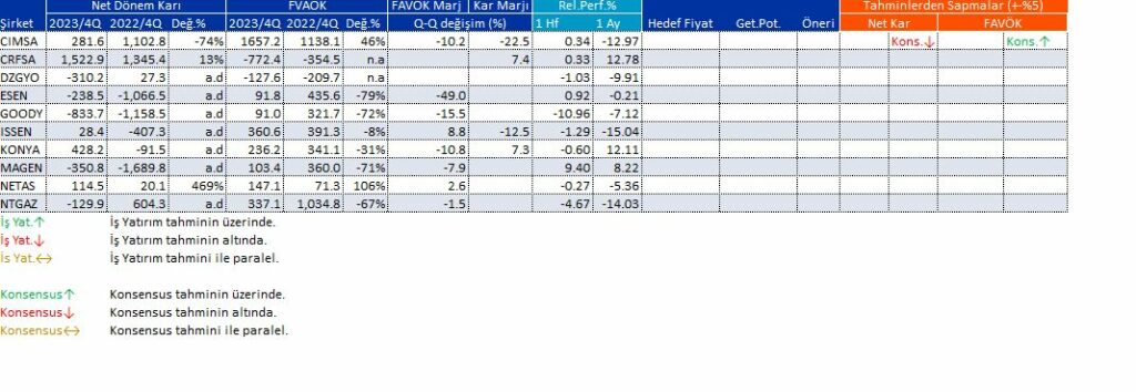 Raporun içinde ise, şu ana kadar finansallarını açıklayan BIST şirketlerini, kümüle edilerek toplanmış toplu piyasa ve sektör karlılıklarını ve piyasa tahminleri ile açıklanan finansal sonuçların karşılaştırmalı analizini bulabilirsiniz.