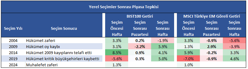 Yerel seçim sonuçlarından bağımsız olarak Türkiye varlıkları ile ilgili olumlu görüşümüzü koruyoruz. Doğru ekonomi politikalarının uygulanması ile risk priminin düşmesini, kredi notunun kademeli olarak artmasını ve Türkiye varlıklarında yükselişin devam etmesini bekliyoruz.