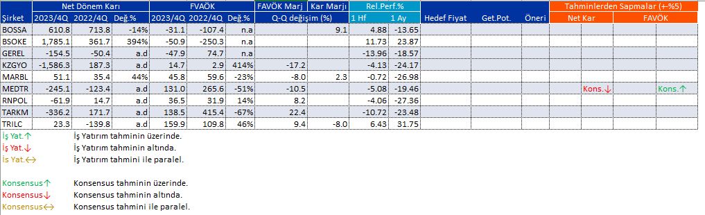 Raporun içinde ise, şu ana kadar finansallarını açıklayan BIST şirketlerini, kümüle edilerek toplanmış toplu piyasa ve sektör karlılıklarını ve piyasa tahminleri ile açıklanan finansal sonuçların karşılaştırmalı analizini bulabilirsiniz.