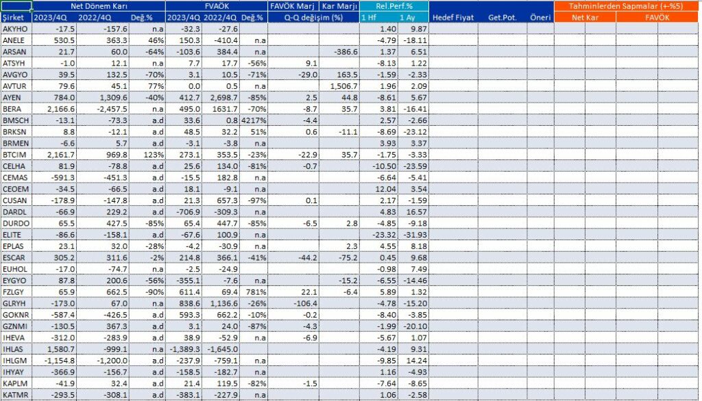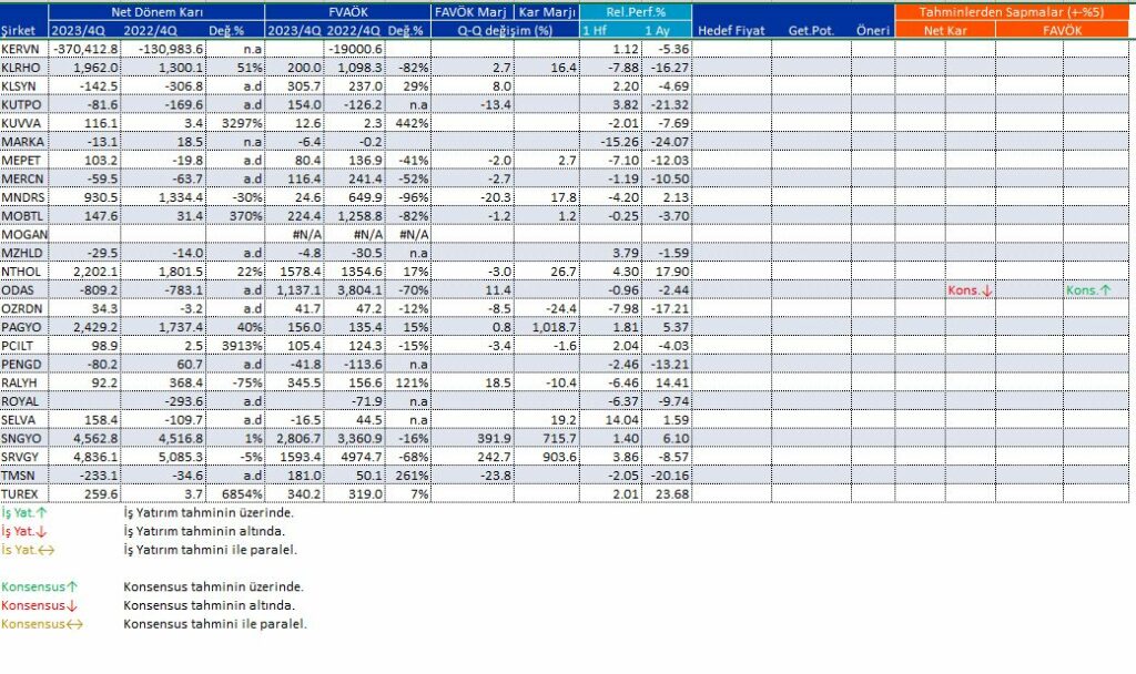 Raporun içinde ise, şu ana kadar finansallarını açıklayan BIST şirketlerini, kümüle edilerek toplanmış toplu piyasa ve sektör karlılıklarını ve piyasa tahminleri ile açıklanan finansal sonuçların karşılaştırmalı analizini bulabilirsiniz.