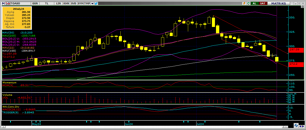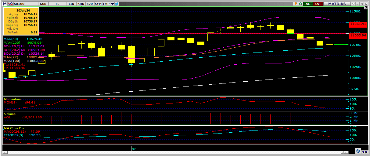 Piyasada satış devam ederken hacimde de bir miktar düşüş eğilimi öne çıkıyor. 200 saatlik ortalamasından negatif ayrışıp 50 günlük ortalamasına yaklaşan endeks için bu seviye güçlü bir destek olarak öne çıkıyor. Satış baskısının devam etmemesi için 10.680 üzerinde kalabilen bir fiyat olumlu olacaktır.