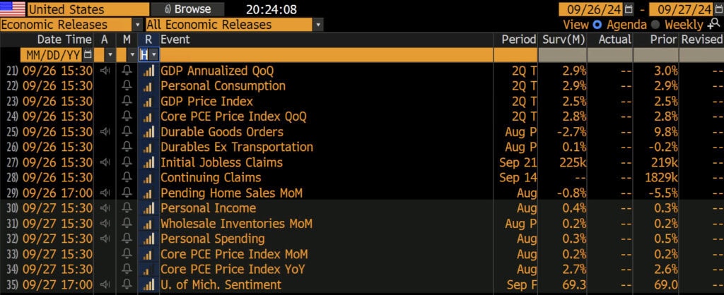 Yeni haftaya başlarken, FED üyelerinin hafta boyunca katılacakları panellerde faiz politikasına ilişkin açıklamalarının öne çıkacağı gündemde, vadeli endeks kontratlarında binde iki seviyelerinde pozitif hareketlilik görülüyor. Powell’ın enflasyondaki yukarı yönlü risklerin azaldığına dair yorumlarının ardından, Cuma günü FED’in favori enflasyon göstergesi olan Ağustos ayı PCE verisi açıklanacak. Ayrıca, ikinci çeyrek büyüme rakamları da Perşembe günü güncellenecek. Ancak, haftanın en dikkat çekecek gelişmeleri arasında, aralarında FED Başkanı Powell ve NY FED Başkanı Williams’ın da yer aldığı FED üyelerinin konuşmalarında 50 baz puanlık indirim kararına dair verebilecekleri sinyaller, FedEx’in bilançosuyla gündemde kalmaya devam eden resesyon beklentilerine yön verecektir. Bilanço takviminde ise, Haziran ayından Cuma günkü kapanışa kadar 40% değer kaybeden çip üreticisi Micron (MU), Çarşamba günkü kapanışın ardından son çeyrek rakamlarını açıklayacak. Yapay zeka sektöründeki hisse senetlerinde hareketliliğe neden olması beklenen bilanço açıklamasında, analistler şirketin EPS beklentisini $1.10, ciro beklentisini ise 7.65 milyar dolar olarak öngörüyor.
