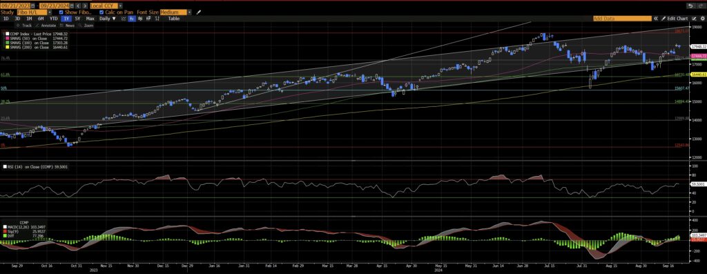 Teknik olarak incelendiğinde, Perşembe günkü seansta yeni zirvesine ulaşan S&P 500 endeksi artık keşfedilmemiş bölgede işlem görüyor. RSI’ın henüz aşırı alım seviyesinde olmadığı endekste, kar realizasyonlarında izlenecek destek seviyeleri olarak, 5640 trend çizgisinin altında 5585’teki Bollinger orta bandı ve 5520’deki 50 günlük hareketli fiyat ortalaması öne çıkıyor. Dow Jones 30 ve S&P 500 endekslerindeki rekorlara rağmen, Nasdaq endeksi haftayı zirvesinden %4 uzak bir noktada kapatırken, Ağustos ayında dirençle karşılaştığı 18000 seviyesini aşmakta yine zorlanıyor. Yeni haftada 18000 direncinin üzerinde bir kapanışta endeksin 18670’deki zirvesine kadar önemli bir direnç seviyesi bulunmuyor. Alt tarafta ise, Cuma günkü kapanışın 500 puan altındaki 17475 seviyesinde bulunan Bollinger Orta bandı ve 50 günlük hareketi ortalama, Nasdaq’ın destek arayışında önemli seviyeler olarak takip edilebilir.