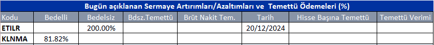 Sermaye Artırımları/Azaltımları ve Temettü Ödemeleri 19/12/2024