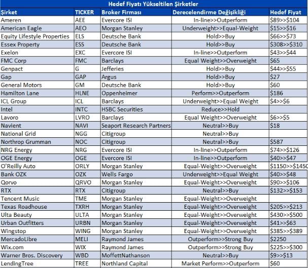 • United Airlines (UAL), dördüncü çeyrek kazanç ve gelirinin beklentilerin üzerinde gerçekleşmesinin ardından, ilk çeyrek düzeltilmiş kazancını hisse başına 75 sent ile 1,25 dolar arasında tahmin ettiğini açıkladı (analist tahmini: 53 sent). Hisse %3,6 yükseldi.