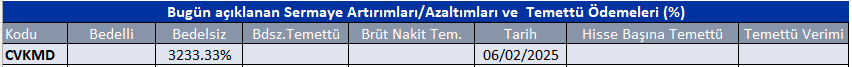 Sermaye Artırımları/Azaltımları ve Temettü Ödemeleri 06/02/2025