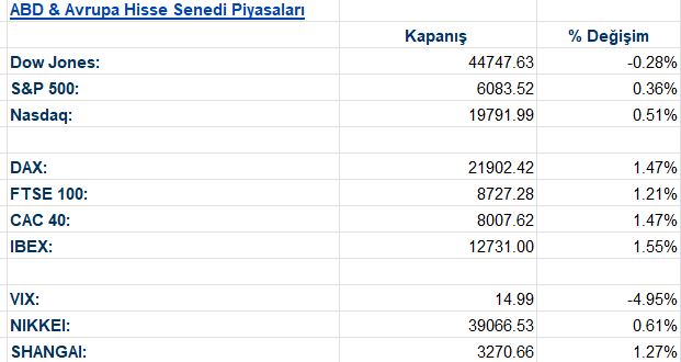 Endekslere baktığımızda S&P 500 %0,36yükselirken, Nasdaq 100 de %0,51 değer kazandı. Dow Jones Endüstriyel Ortalaması %0,28 ve Russell 2000 endeksi %0,5 oranında geriledi. Muhteşem Yedili %0,68 oranında yükseldi.
