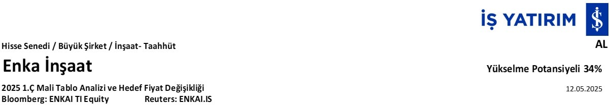 Şirket Raporu: Enka İnşaat-ENKAI.IS: 1. Çeyrek Sonuçları ve Hedef Fiyat Değişikliği