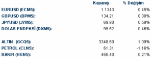 Avrupa tahvil piyasasında da getiriler yukarı yönlü seyretti. Almanya 10 yıllıkları 4 bps artışla %2,65 seviyesine yükseldi. İngiltere 10 yıllıkları %4,755, Fransa 10 yıllıkları %3,308 seviyesinde işlem gördü. ECB Yönetim Konseyi Üyesi Escriva, eurodaki güçlenmenin ve enerji fiyatlarındaki gerilemenin enflasyon üzerindeki aşağı yönlü etkisine dikkat çekerek, 5 Haziran’daki toplantıda yeni senaryolarla güncel bir tahmin seti sunulacağını belirtti.