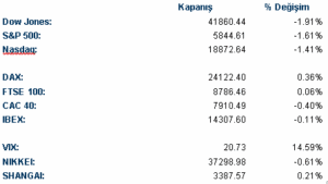 Petrol tarafında ise baskı devam etti. ABD’deki yüksek borçlanma maliyetlerine ve zayıf talep endişelerine paralel olarak WTI ham petrol %1,1 düşüşle 61,34 dolardan, Brent petrol ise %1,15 kayıpla 64,64 dolardan işlem gördü.