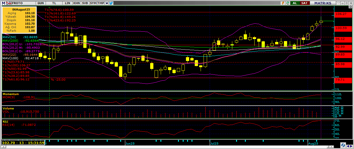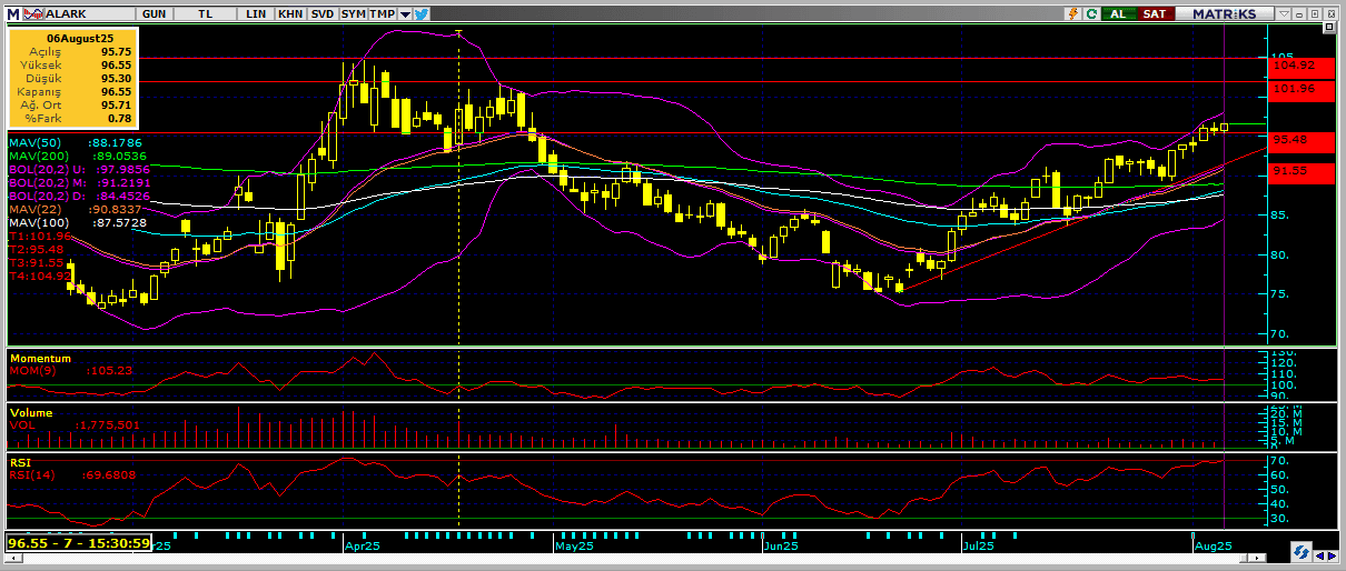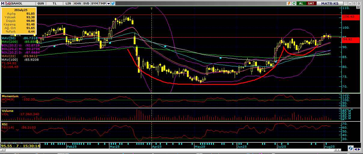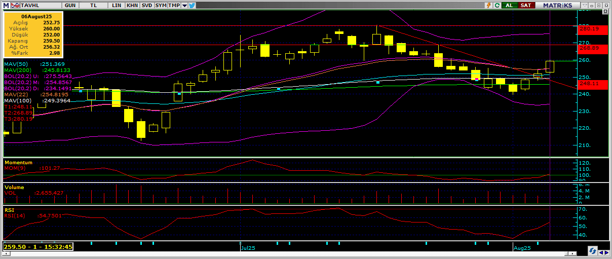 BIST piyasalarında oluşan tüm verilere ait telif hakları tamamen BIST’e ait olup, bu veriler tekrar yayınlanamaz. Pay Piyasası, Borçlanma Araçları Piyasası, Vadeli İşlem ve Opsiyon Piyasası verileri BIST kaynaklı en az 15 dakika gecikmeli verilerdir.