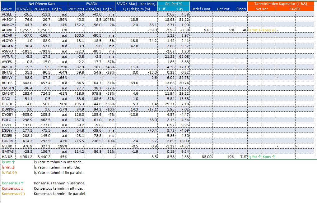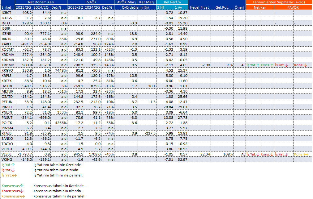 Raporun içinde ise, şu ana kadar finansallarını açıklayan BIST şirketlerini, kümüle edilerek toplanmış toplu piyasa ve sektör karlılıklarını ve piyasa tahminleri ile açıklanan finansal sonuçların karşılaştırmalı analizini bulabilirsiniz.