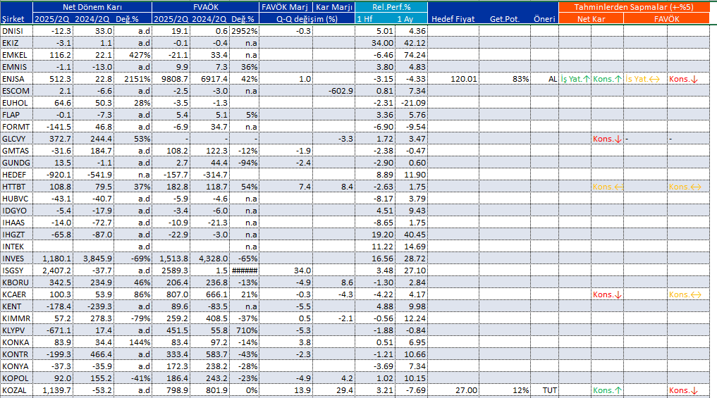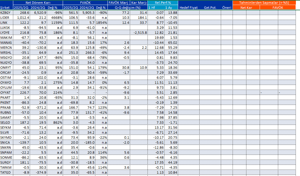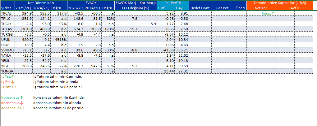 Raporun içinde ise, şu ana kadar finansallarını açıklayan BIST şirketlerini, kümüle edilerek toplanmış toplu piyasa ve sektör karlılıklarını ve piyasa tahminleri ile açıklanan finansal sonuçların karşılaştırmalı analizini bulabilirsiniz.