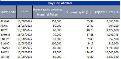 Pay Geri Alımları 14/08/2025