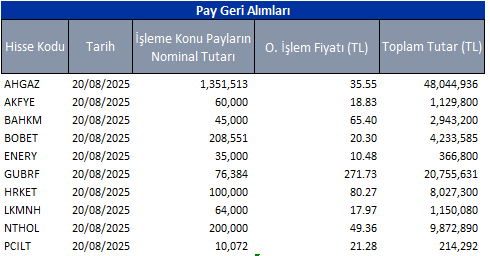 Pay Geri Alımları 21/08/2025