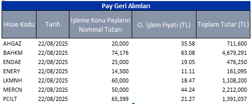 Pay geri alım programları kapsamında ilgili tarihte geri alım yapan şirketlerin listesini aşağıdaki tabloda bulabilirsiniz.
