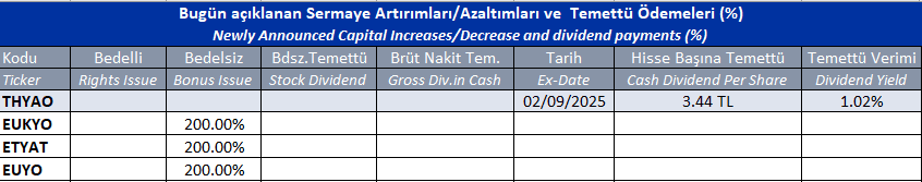 Sermaye Artırımları/Azaltımları ve Temettü Ödemeleri 02/09/2025