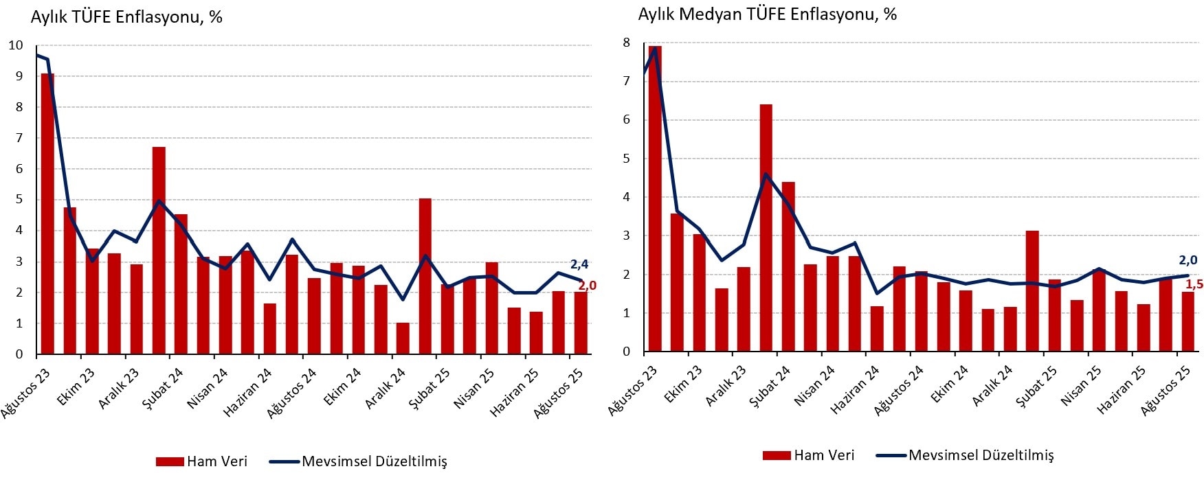 Ağustos ayı Tüketici Fiyat Endeksi (TÜFE) enflasyonu aylık %2,04 ile piyasa (%1,8) ve İş Yatırım (%1,75) tahminlerinin üzerinde geldi. Yıllık enflasyon ise 0,5 yüzde puan düşerek %33,0 seviyesine geriliyor. 4 Eylül Perşembe günü saat 16.00’da ilave veriler açıklanana kadar mevsimsel düzeltilmiş aylık manşet enflasyonu kendi yöntemlerimizin ortalamasını alarak %2,4 (Temmuz %2,7, Haziran %2,0, Mayıs %2,0) civarında tahmin ediyoruz.