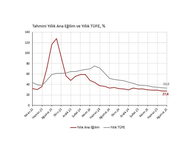 Ağustos ayı Tüketici Fiyat Endeksi (TÜFE) enflasyonu aylık %2,04 ile piyasa (%1,8) ve İş Yatırım (%1,75) tahminlerinin üzerinde geldi. Yıllık enflasyon ise 0,5 yüzde puan düşerek %33,0 seviyesine geriliyor. 4 Eylül Perşembe günü saat 16.00’da ilave veriler açıklanana kadar mevsimsel düzeltilmiş aylık manşet enflasyonu kendi yöntemlerimizin ortalamasını alarak %2,4 (Temmuz %2,7, Haziran %2,0, Mayıs %2,0) civarında tahmin ediyoruz.
