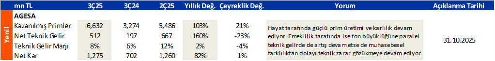 AGESA.IS: 3Ç25 Kar Tahmini