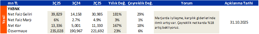 YKBNK.IS: 1Ç25 Kar Tahmini