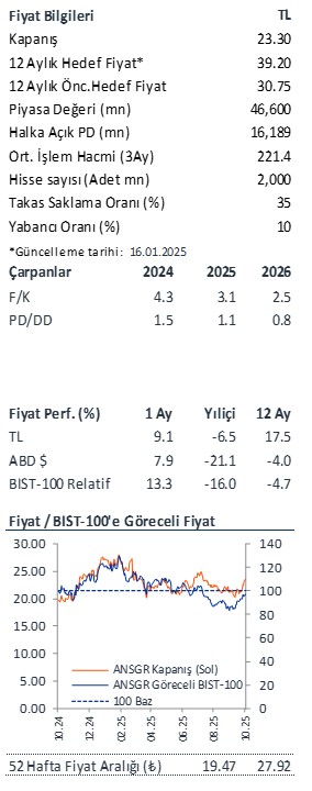 Anadolu Sigorta için AL tavsiyemizi sürdürüyoruz. Mevcut piyasa fiyatlarına göre, hedef fiyatımız %68 oranında yükseliş potansiyeline işaret ediyor.