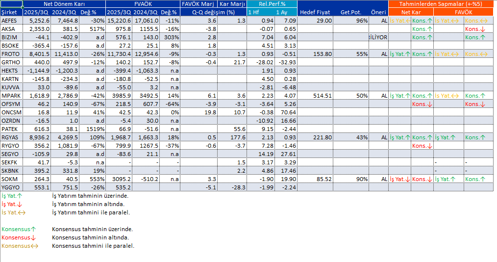 Raporun içinde ise, şu ana kadar finansallarını açıklayan BIST şirketlerini, kümüle edilerek toplanmış toplu piyasa ve sektör karlılıklarını ve piyasa tahminleri ile açıklanan finansal sonuçların karşılaştırmalı analizini bulabilirsiniz.