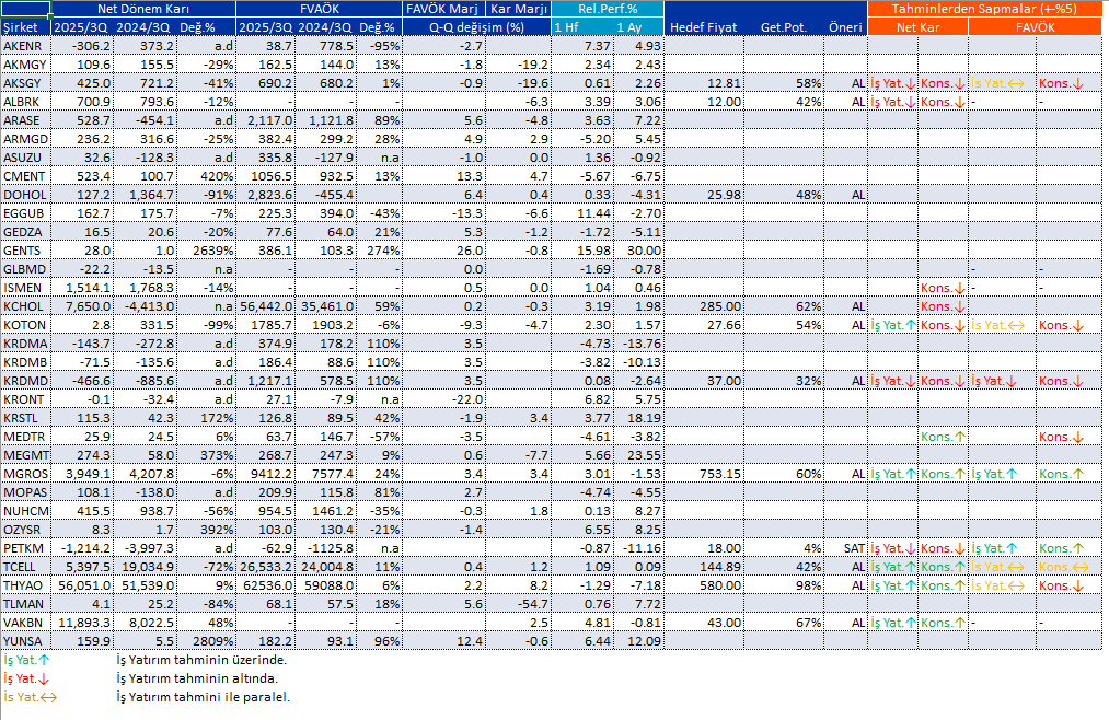 Raporun içinde ise, şu ana kadar finansallarını açıklayan BIST şirketlerini, kümüle edilerek toplanmış toplu piyasa ve sektör karlılıklarını ve piyasa tahminleri ile açıklanan finansal sonuçların karşılaştırmalı analizini bulabilirsiniz.