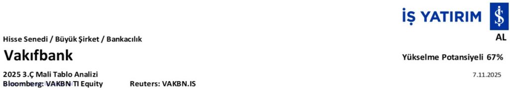 Net risk maliyeti (CoR) yönetilebilir seviyelerde kaldı. Vakıfbank’ın net risk maliyeti 3Ç25’te 166 baz puan olarak gerçekleşti; bu oran 2Ç25’teki 158 bps’ye göre hafif yükseliş gösterdi. Dönem içinde yaklaşık 19,2 milyar TL tutarında yeni takipteki kredi (NPL) girişi yaşanırken, bunun yaklaşık %60’ı bireysel ve KOBİ segmentlerinden kaynaklandı. Buna rağmen banka, tahsilat performansının güçlü olduğunu ve varlık kalitesinin normalleştiğini vurguladı. 3Ç25 itibarıyla 4 milyar TL serbest karşılık korunmaya devam ediyor.