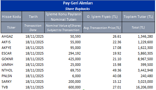 Pay geri alım programları kapsamında ilgili tarihte geri alım yapan şirketlerin listesini aşağıdaki tabloda bulabilirsiniz.