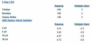 Kredi risk primleri tarafında Türkiye CDS’i 3 baz puan artışla 244 seviyesine yükseldi. Brezilya ve Güney Afrika CDS’lerinde de 2–3 bp arasında genişleme görülürken, gelişen ülke risk primleri genel olarak zayıf seyreden risk iştahı ve ABD tahvil piyasasındaki oynaklık nedeniyle hafif baskı altında kaldı. Türkiye’nin 5 yıllık CDS’te 240–250 bandındaki hareketini sürdürmesi, küresel gelişmelere duyarlılığın yüksek kaldığına işaret ediyor.