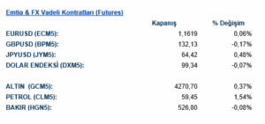 WTI petrol %1,5 yükselişle 59,45 dolar seviyesinde günü tamamlarken ons altın günü yataya yakın kapattı. Enerji üreticileri, petrol fiyatlarındaki toparlanmanın etkisiyle hisse bazında pozitif ayrıştı.