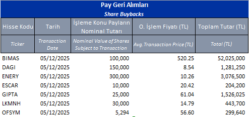 Pay geri alım programları kapsamında ilgili tarihte geri alım yapan şirketlerin listesini aşağıdaki tabloda bulabilirsiniz.
