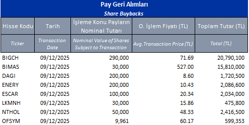 Pay Geri Alımları 09/12/2025