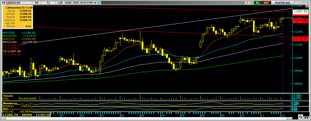 11.300 üzerinde kalmaya çalışan endeks için bulunduğu alanda 11.350 çevresi orta vadeli bir direnç bölgesi, destek olarak 11.250 ve 11.200 seviyeleri öne çıkıyor.