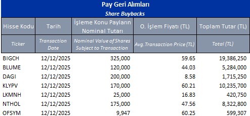 Pay geri alım programları kapsamında ilgili tarihte geri alım yapan şirketlerin listesini aşağıdaki tabloda bulabilirsiniz.