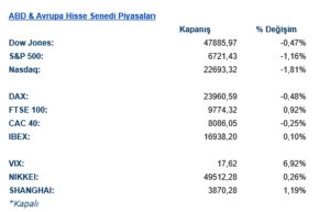 Avrupa tahvil piyasalarında ise ülke bazlı ayrışmalar dikkat çekti. Almanya 10 yıllık tahvil getirisi 2 baz puan yükselerek %2,86 seviyesine çıkarken, İngiltere 10 yıllık getirisi 4 baz puan gerileyerek %4,47 seviyesine indi. Piyasalarda, Avrupa Merkez Bankası’nın para politikasında temkinli duruşunu sürdürmesine karşın, büyüme görünümüne ilişkin endişelerin uzun vadeli faizler üzerindeki baskıyı artırabileceği yönündeki beklentiler öne çıkıyor.
