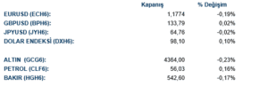 Petrol vadeli işlemleri, ABD’nin Venezuela’ya yönelik yaptırım kapsamındaki tankerlerin ülkeye giriş ve çıkışını engellemesinin ardından dünkü yükselişini gün içerisinde devam ettirse de satışlar gelmesi ile yatay bir kapanış yaptı. Spot altın %0.14 değer kaybederek yatay bir hareket yaparken. Dün sert yükselen spot gümüşte %1.36 değer kaybı ile günü geçiriyor. LME tarafında ise bakır %0.35, alüminyum %0.36 değer kazandı. Çinko ise %0.31 değer kaybetti. Çin, ABD’den en az 7 milyon ton soya fasulyesi alımı yaptı. Dolar endeksi ise yatay pozitif bir hareket ile 98.44 seviyelerinden işlem görüyor
