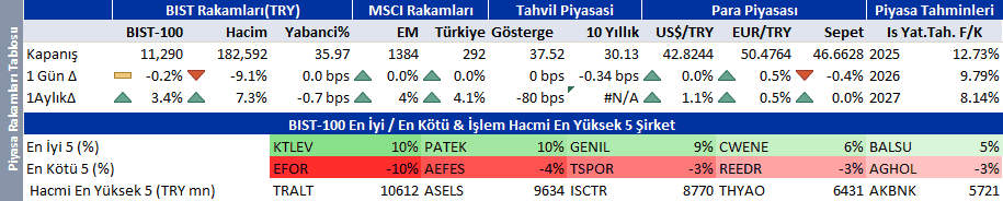 | Dünyadan negatif ayrışıyoruz Dünya borsaları güçlü ABD büyümesi ve güvercin Fed beklentisi ile yükselmeye devam ediyor. S&P 500 yeni zirve ile yoluna devam ediyor. Muhteşem yedi hisseleri Amazon, Google, Nvidia öncülüğünde yükselişte başı çekiyor. Enerji hisseleri Venezuela ve Rusya kaynaklı arz endişesi ile değer kazanıyor. Ama tüm gemileri yüzdüren bir ralli söz konusu değil. Küçük hisse ağırlıklı Russell negatif ayrışıyor. Borsa İstanbul küresel rallide negatif ayrışmaya devam ediyor. Beyaz eşya, gıda perakendesi, holding, otomotiv hisselerinde sert değer kaybı devam etti. Son iki haftanın şampiyonu bankalar satış dalgasından bu kez kaçamadı. Aselsan ve elektrik üretim ve dağıtım şirketleri satış dalgasında pozitif ayrışan az sayıda hisse arasında yer aldı. Dünya piyasalarının seyri Borsa İstanbul’da pozitif bir açılışa işaret ediyor. Ama dünya ile korelasyonumuz son dönemde çok zayıfladı. Sürpriz yaratmayan asgari ücret artışının ve enflasyon muhasebesinin vergi uygulamasından kaldırılmasının önemli bir piyasa etkisi yaratmasını beklemiyoruz. Bim’in katılım bankası kurma haberi orta vadede pozitif etki yaratabilir. Bugün yayınladığımız sektör raporunda Mavi ve Migros’u öne çıkartıyoruz. Endeks için destek ve direnç seviyeleri 11.200 ve 11.400. Teknik bültende öne çıkardığımız hisseler: Alarko, Aksa Enerji. |