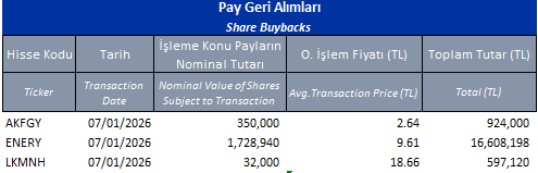 Pay geri alım programları kapsamında ilgili tarihte geri alım yapan şirketlerin listesini aşağıdaki tabloda bulabilirsiniz.