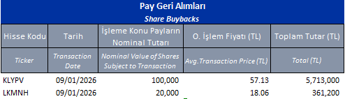 Pay geri alım programları kapsamında ilgili tarihte geri alım yapan şirketlerin listesini aşağıdaki tabloda bulabilirsiniz.